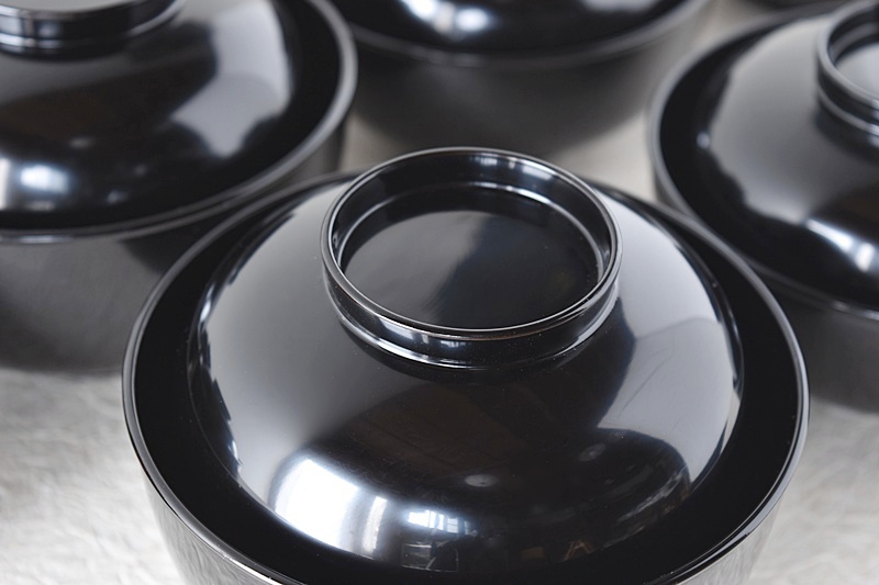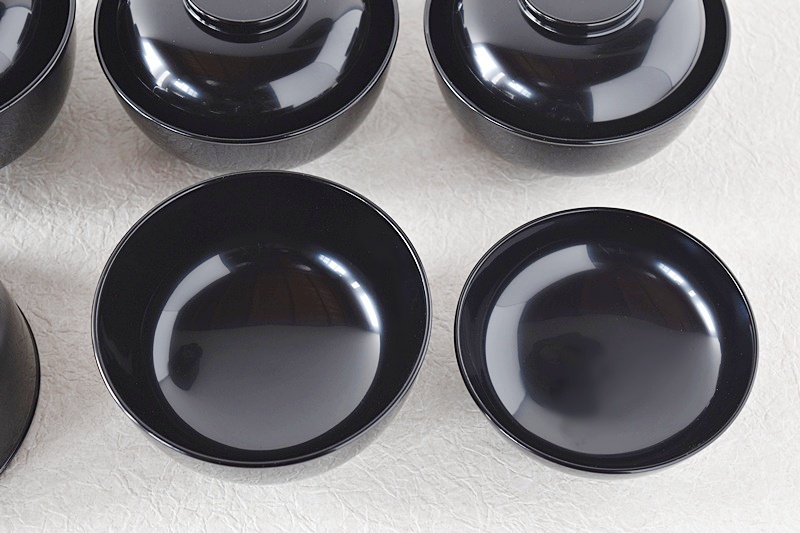 天然木製漆塗 輪島塗 塗師 茶平一斎 黒塗飯碗汁椀 四つ椀 各5客全10客 茶懐石 茶事 懐石料理