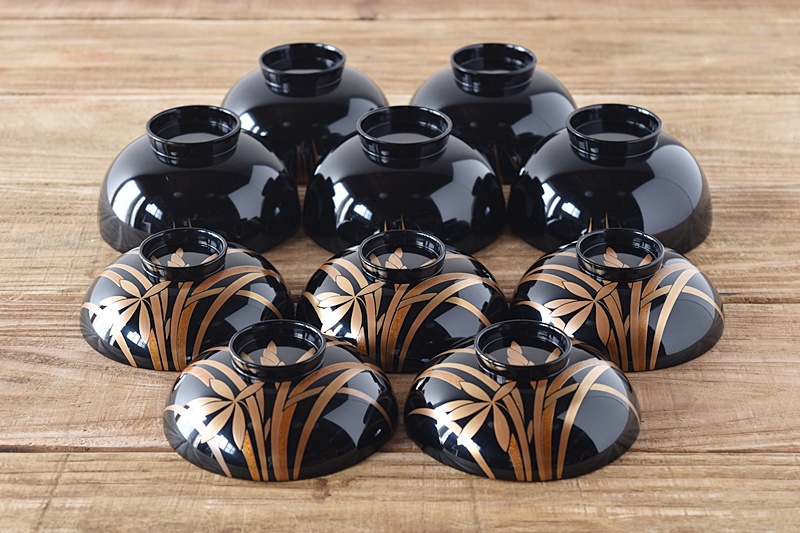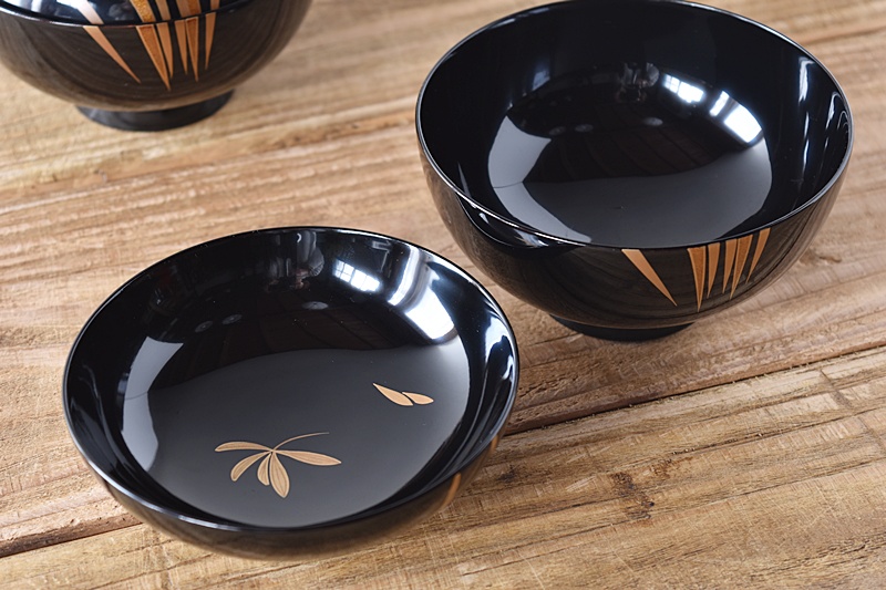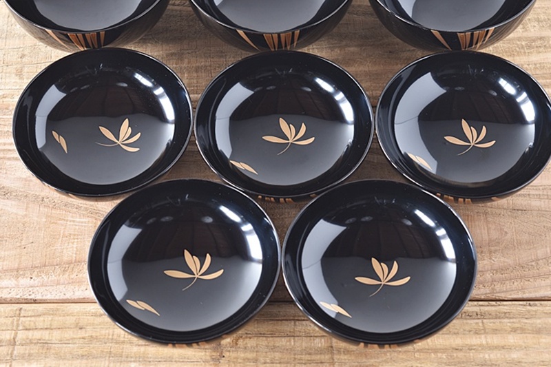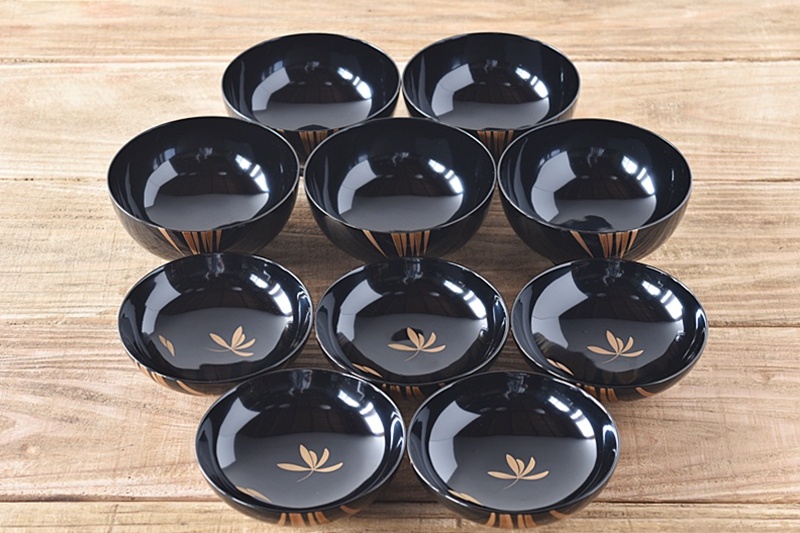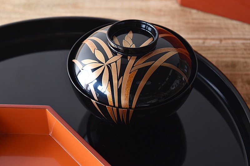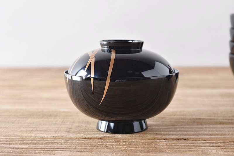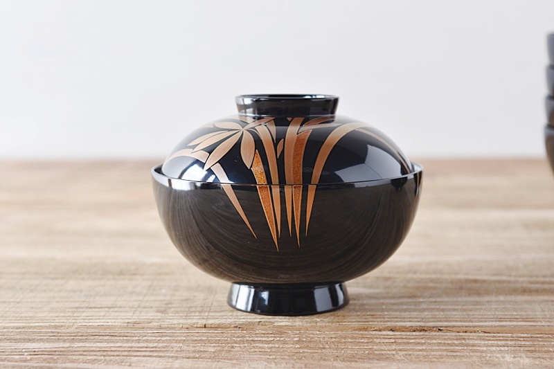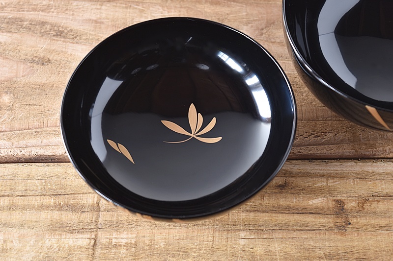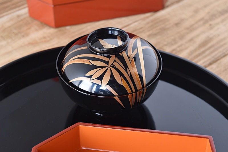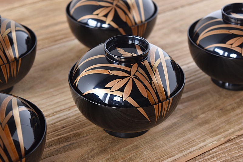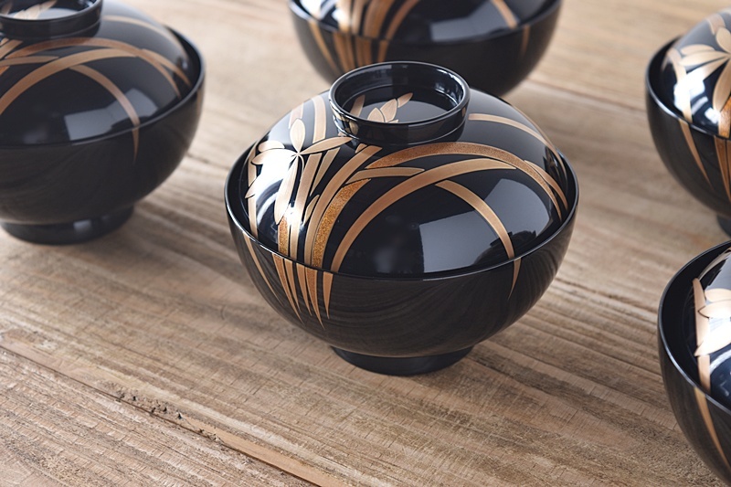 天然木製漆塗 輪島塗 蘭金蒔絵 見返し図有 吸物椀 5客セット