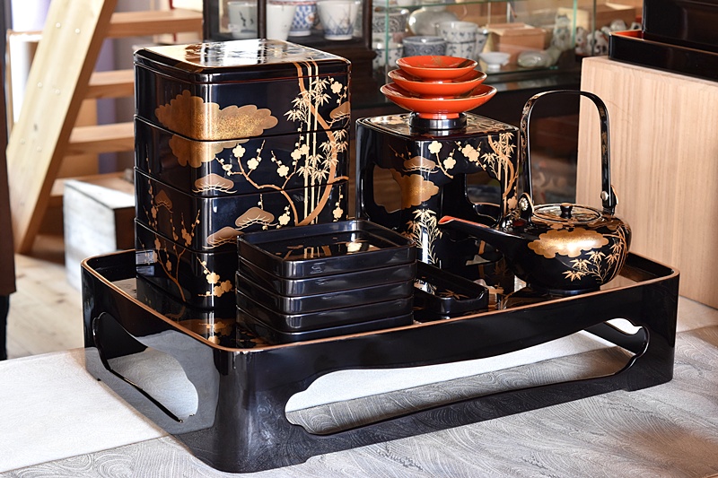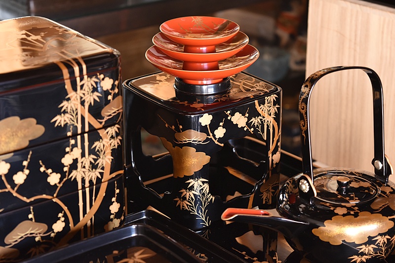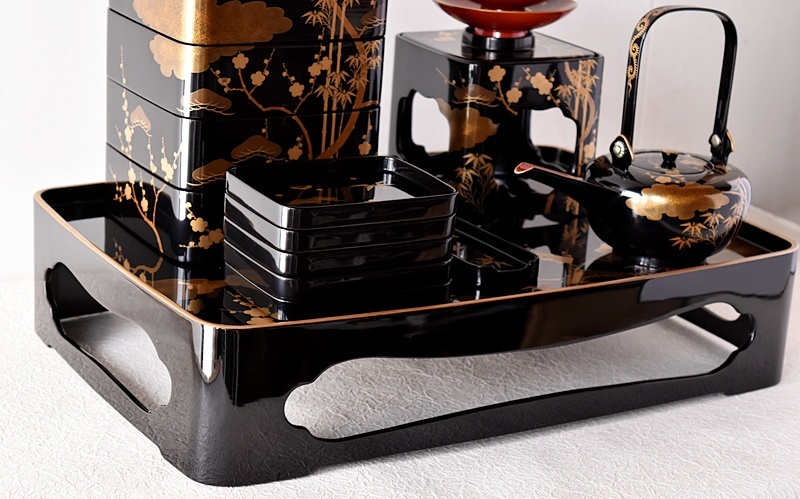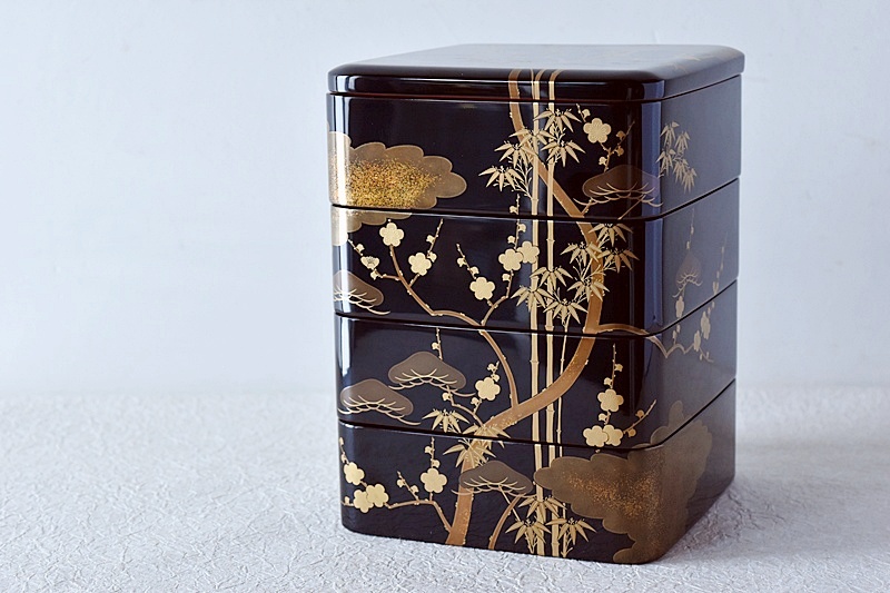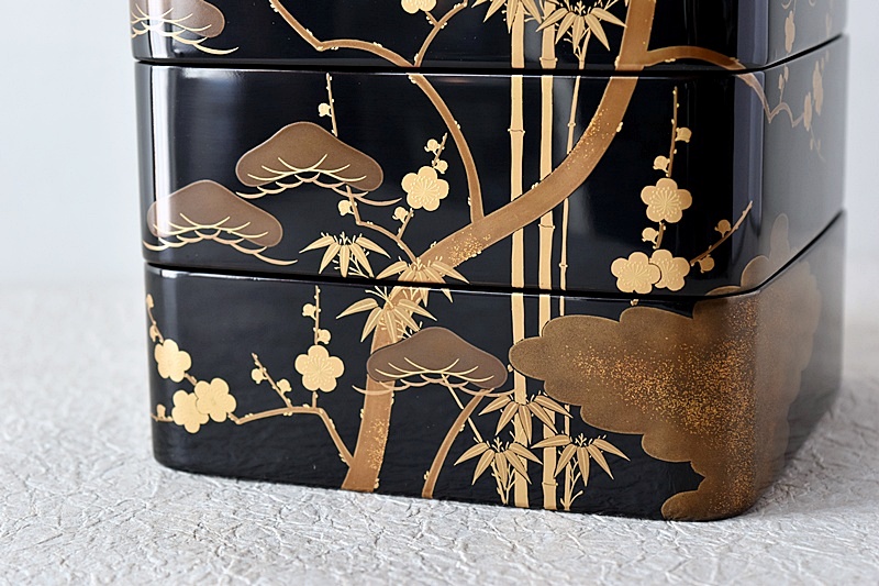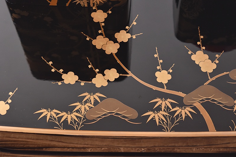 研ぎ出し蒔絵もされており、松竹梅の絵付けは圧巻の作品です。