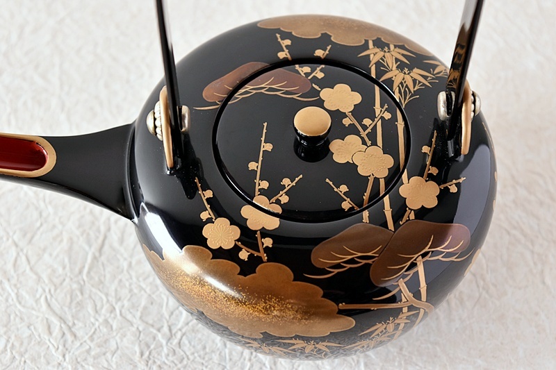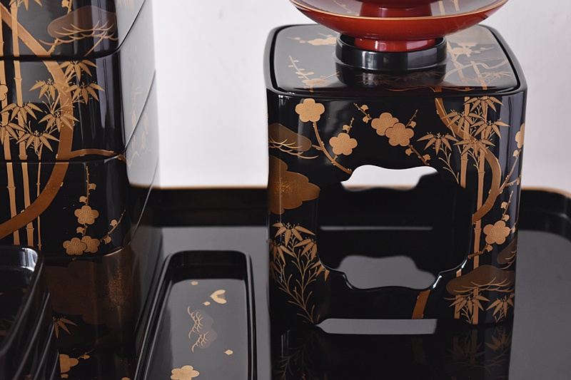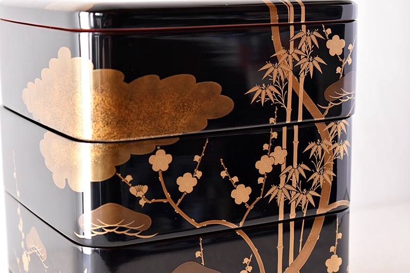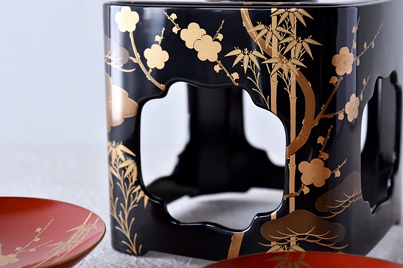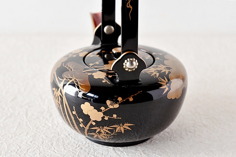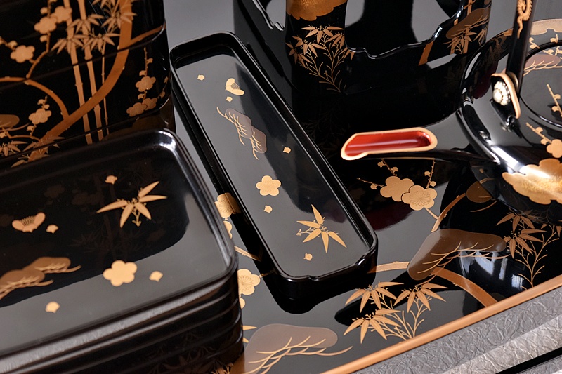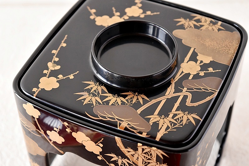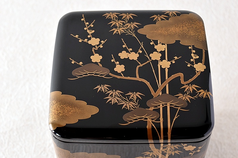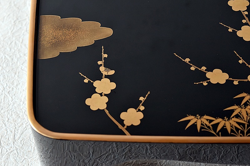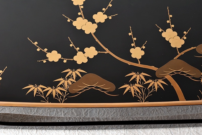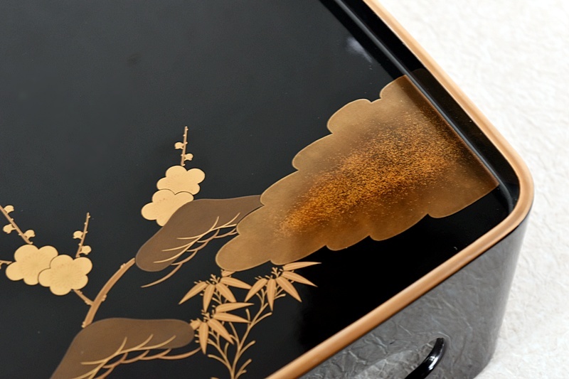 研ぎ出し蒔絵もされており、松竹梅の絵付けは圧巻の作品です。