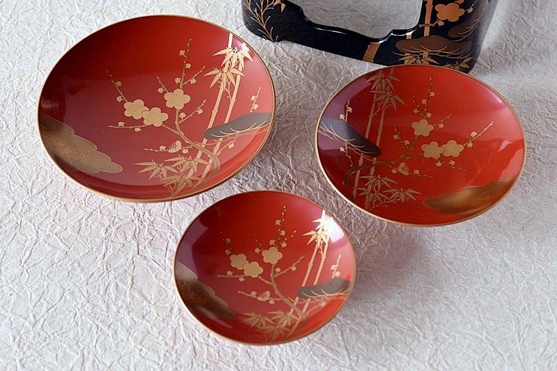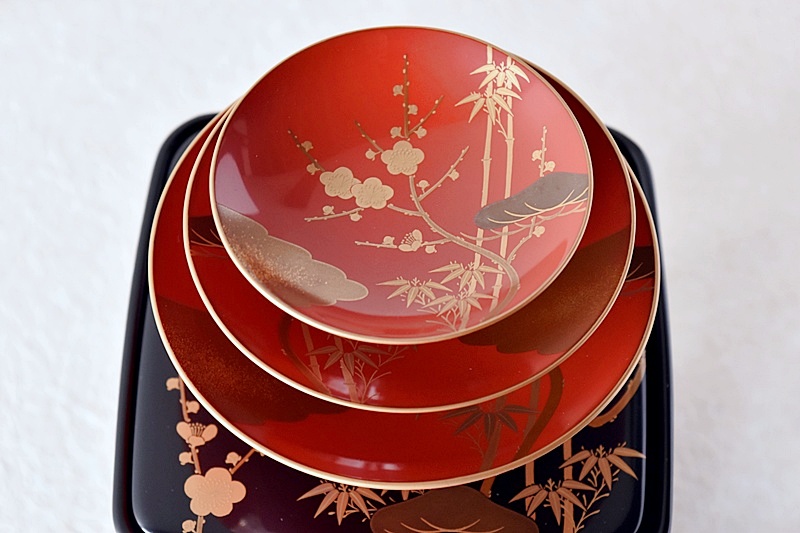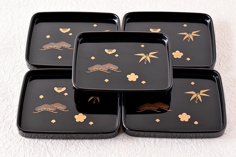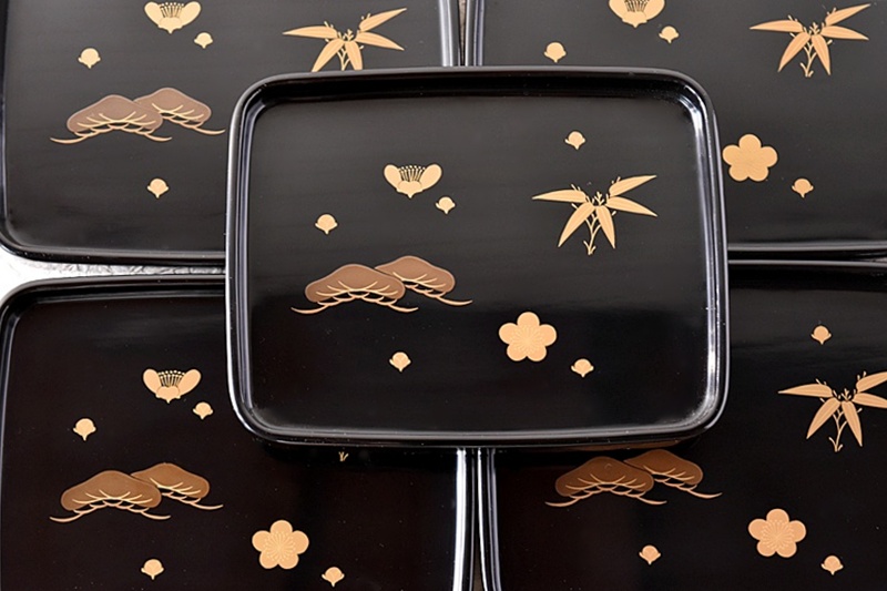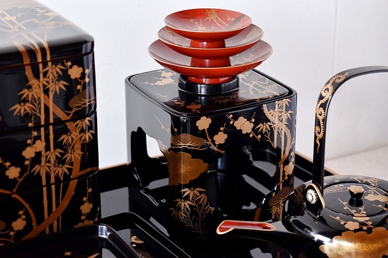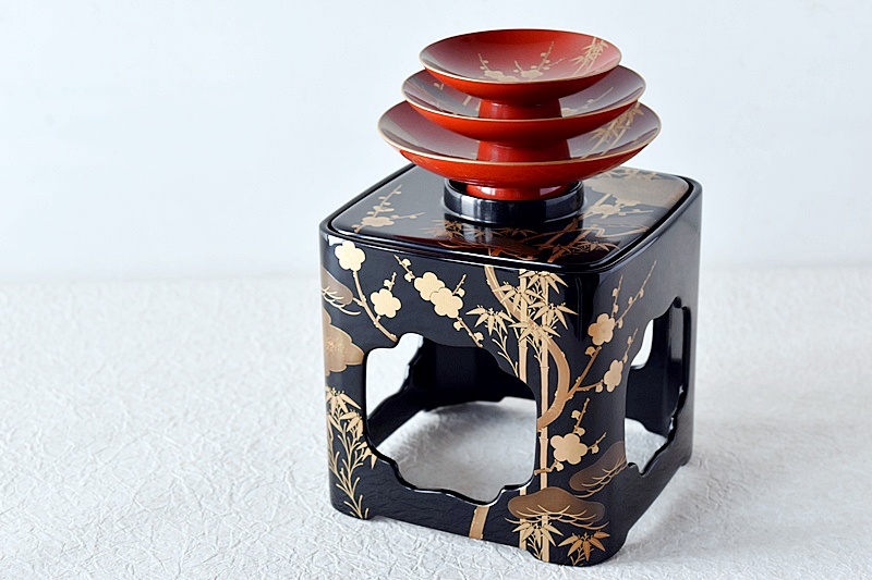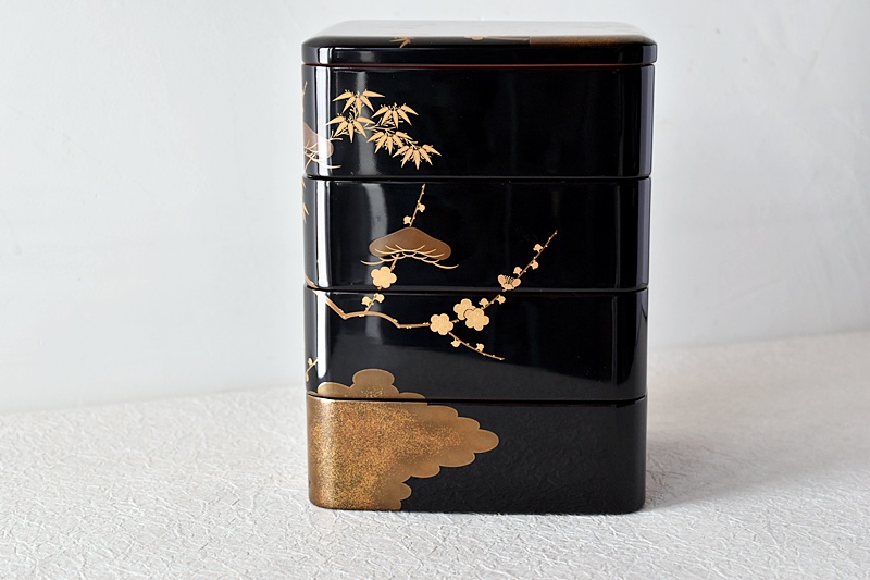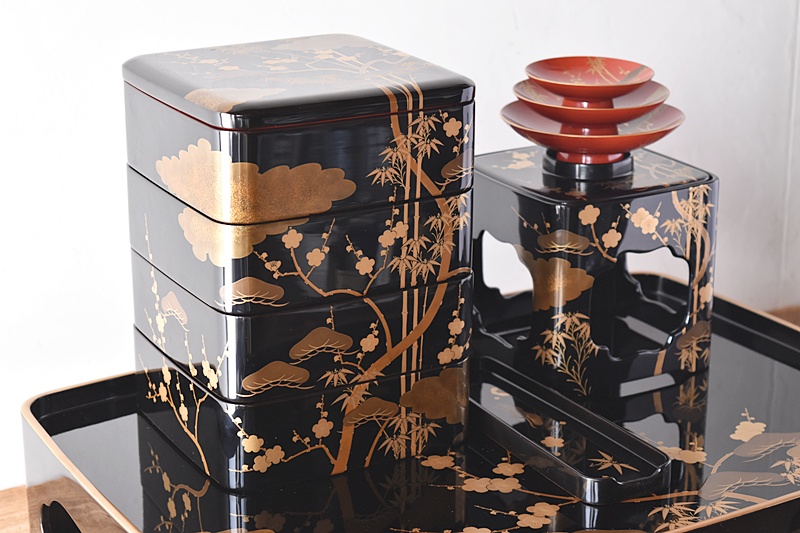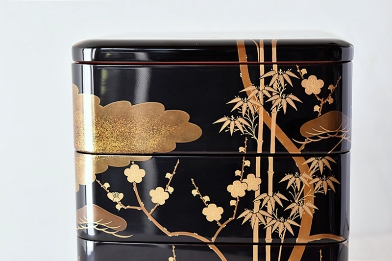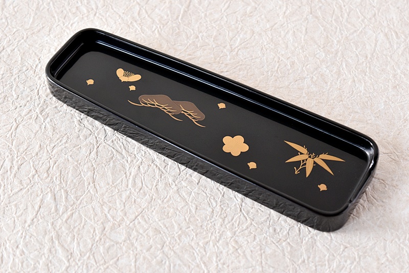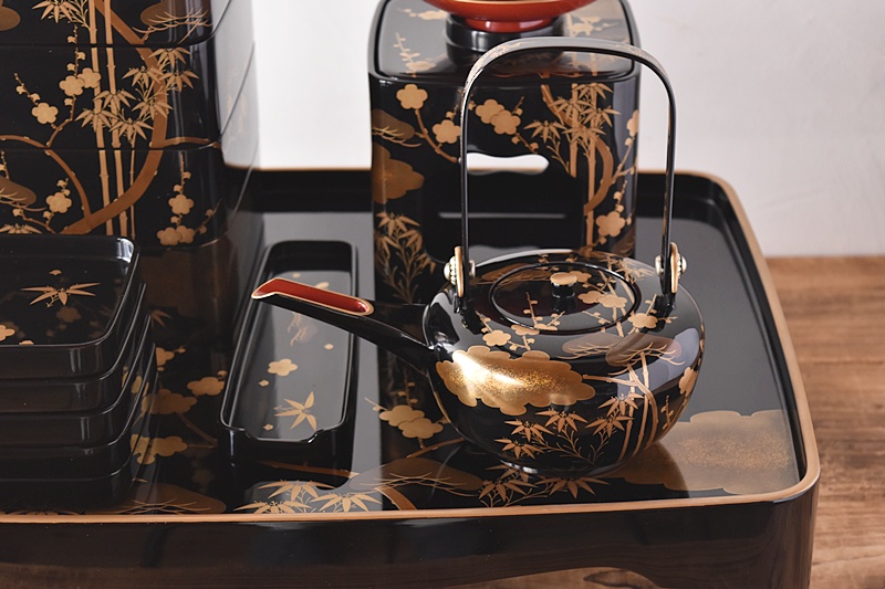 研ぎ出し蒔絵もされており、松竹梅の絵付けは圧巻の作品です。