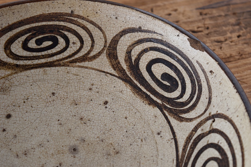 目跡や古いカケ、ヒビなどありますが、時代あるものでこのくらいの傷みがかえって景色となって民芸の魅力がありますね。