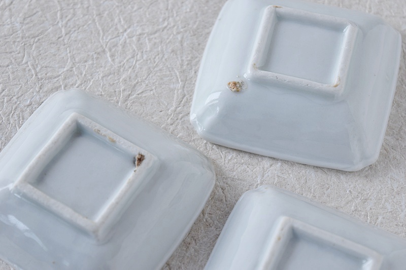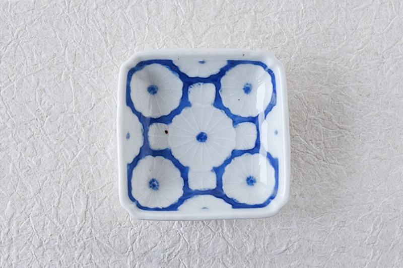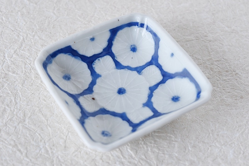 白磁 染付 菊陽刻 角小皿 豆皿