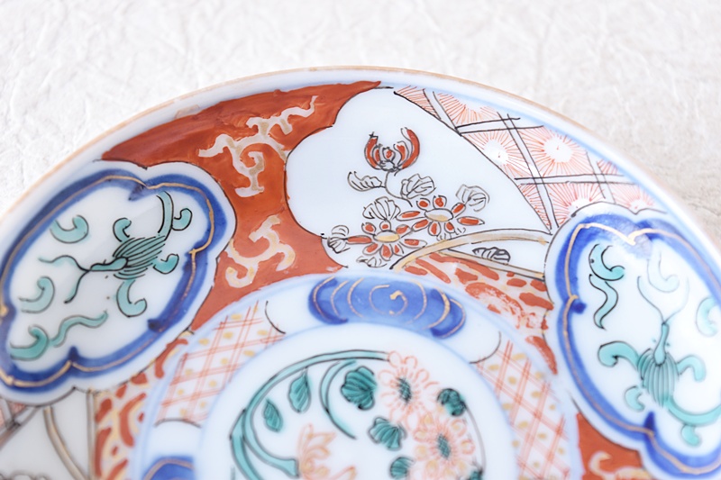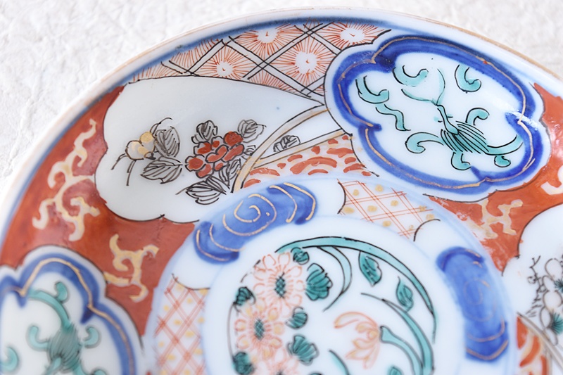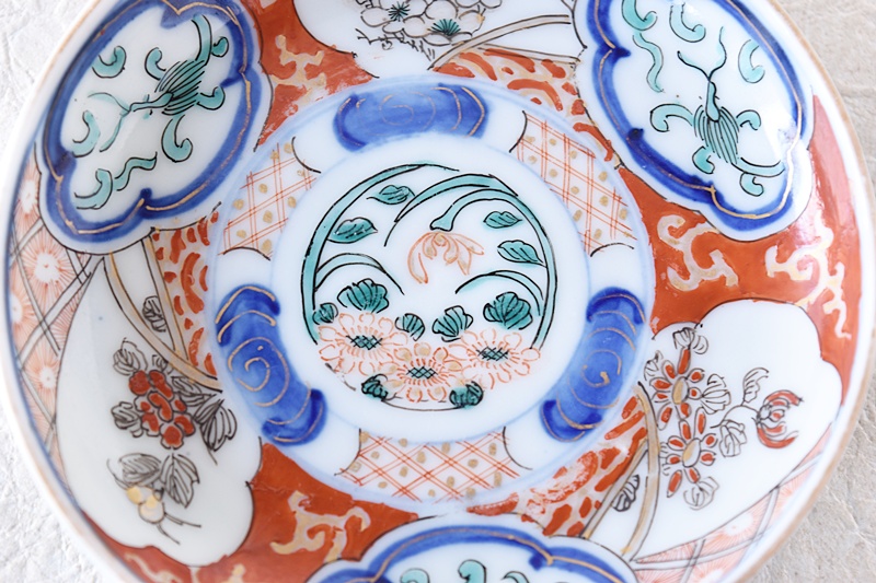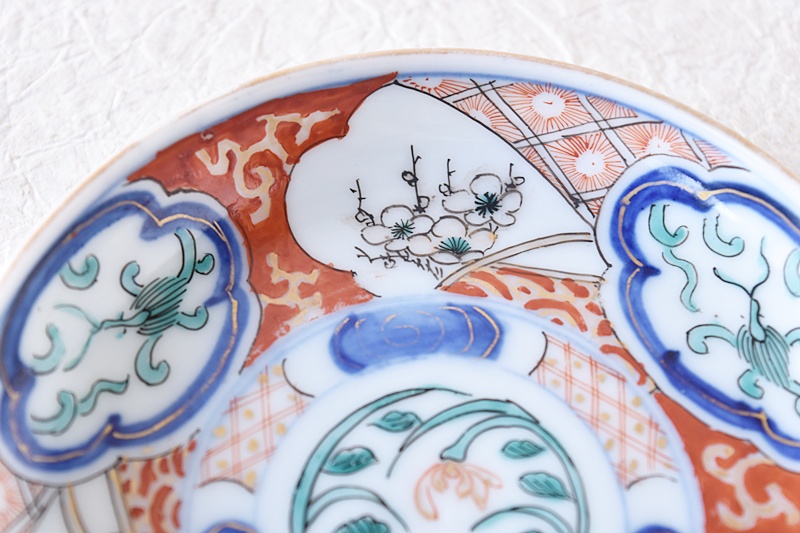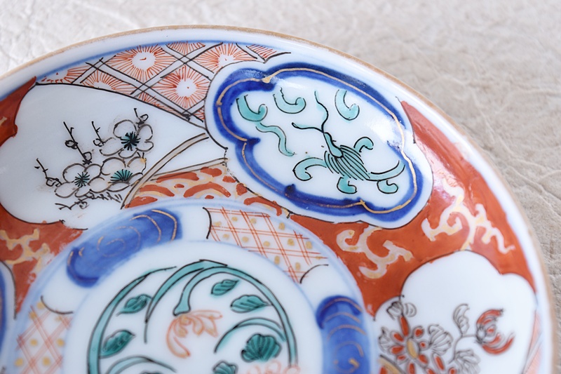 色絵 菊蘭梅牡丹龍 小皿 瀬戸