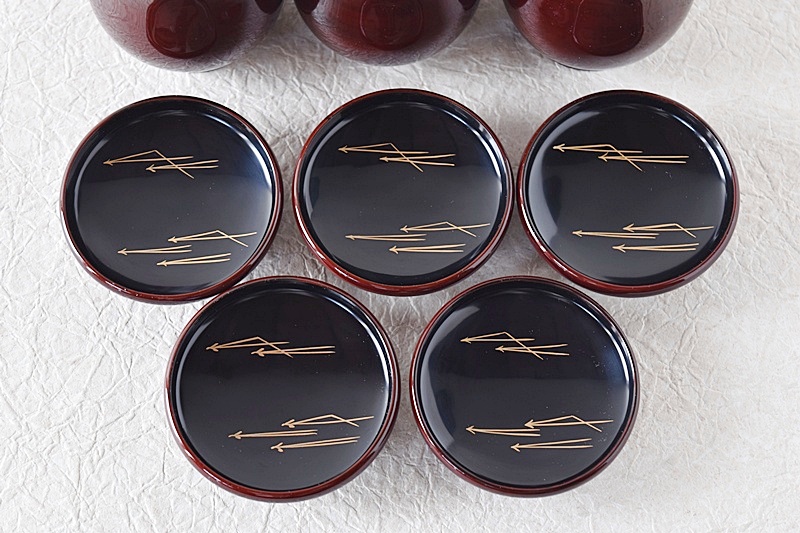 茶懐石道具 天然木製漆塗 松葉蒔絵 小吸物椀 5客セット