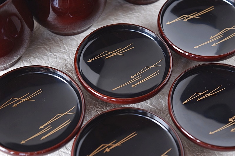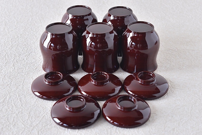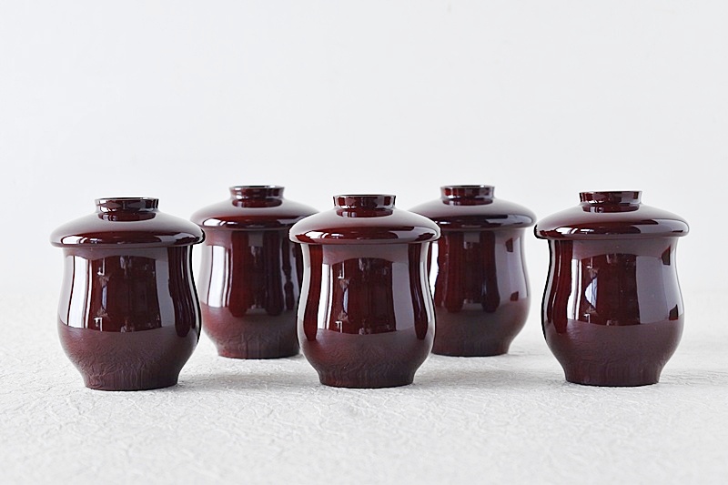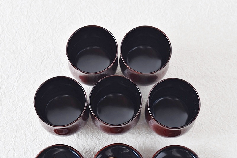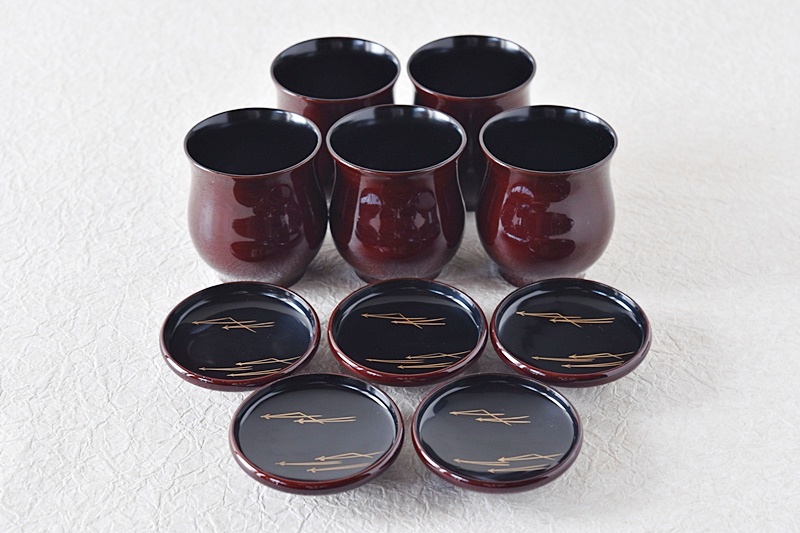 茶懐石道具 天然木製漆塗 松葉蒔絵 小吸物椀 5客セット