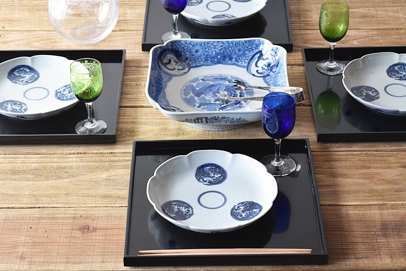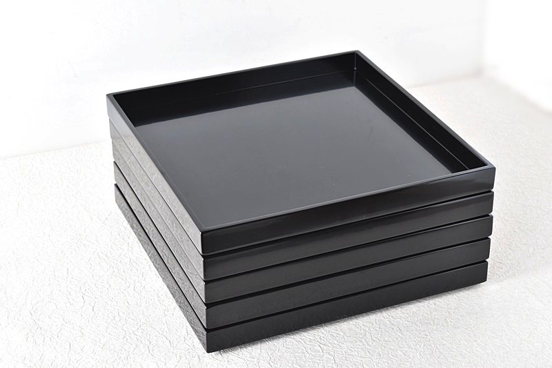 茶懐石道具 天然木製漆塗 黒塗 真塗 会席膳 5客セット