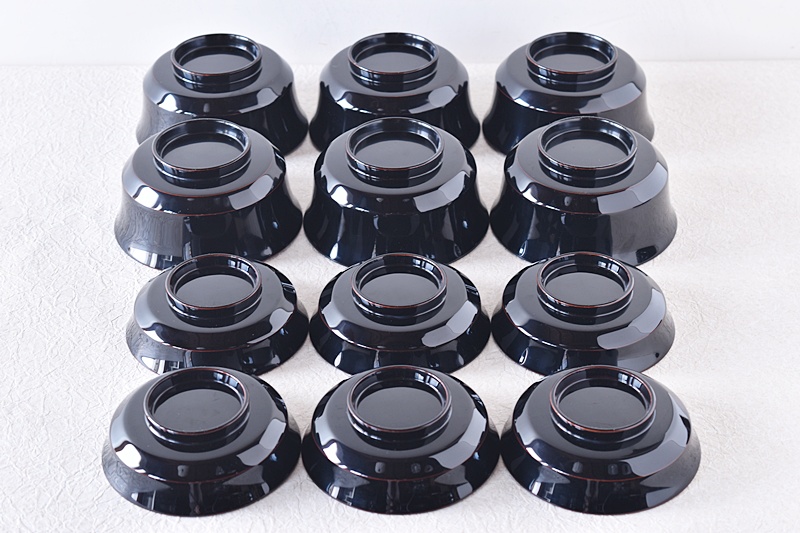 輪島塗 在銘 天然木製漆塗 そば椀 小皿付き 大き目煮物椀 各6客セット