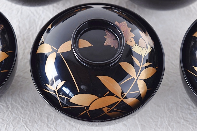 輪島塗 在銘 天然木製漆塗 りんどう蒔絵 角知作 吸物椀 5客セット