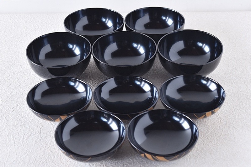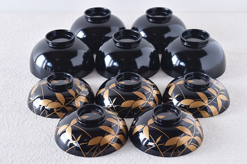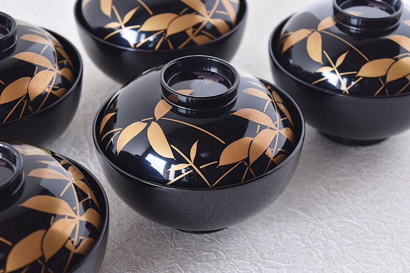 輪島塗 在銘 天然木製漆塗 りんどう蒔絵 角知作 吸物椀 5客セット