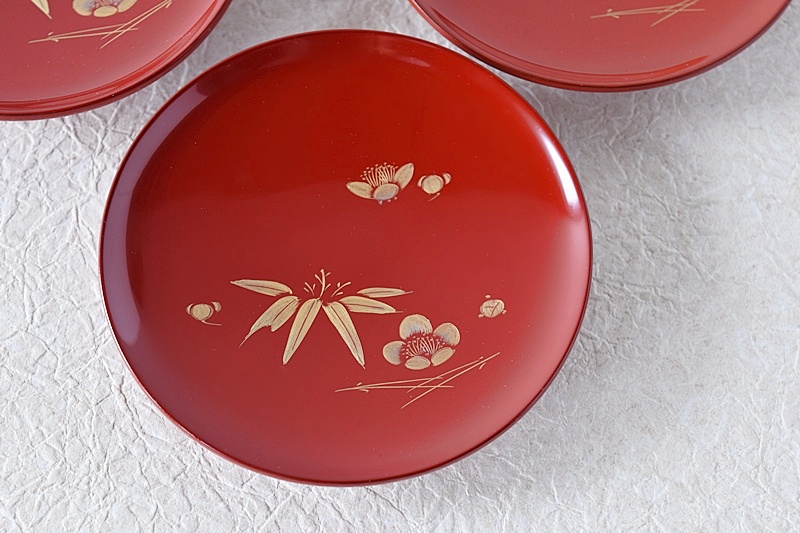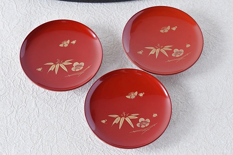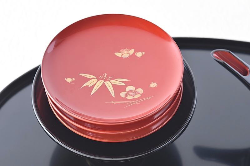 輪島塗 在銘 松竹梅沈金蒔絵 屠蘇器セット 一揃 沈金師成峰 塗師啓彩