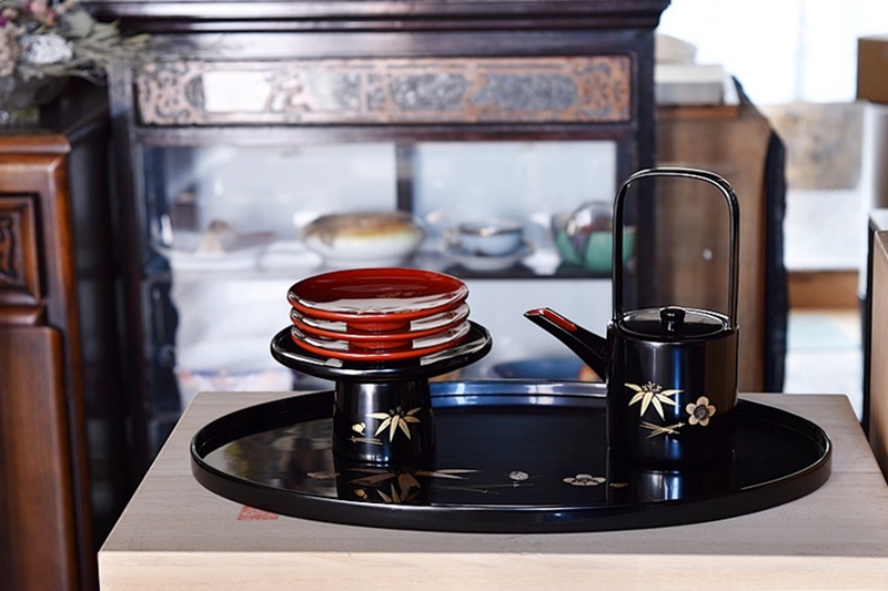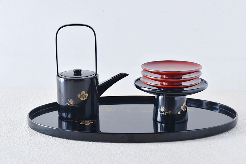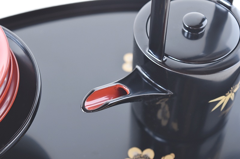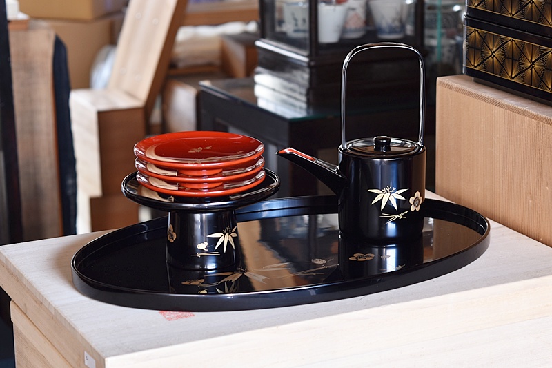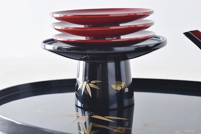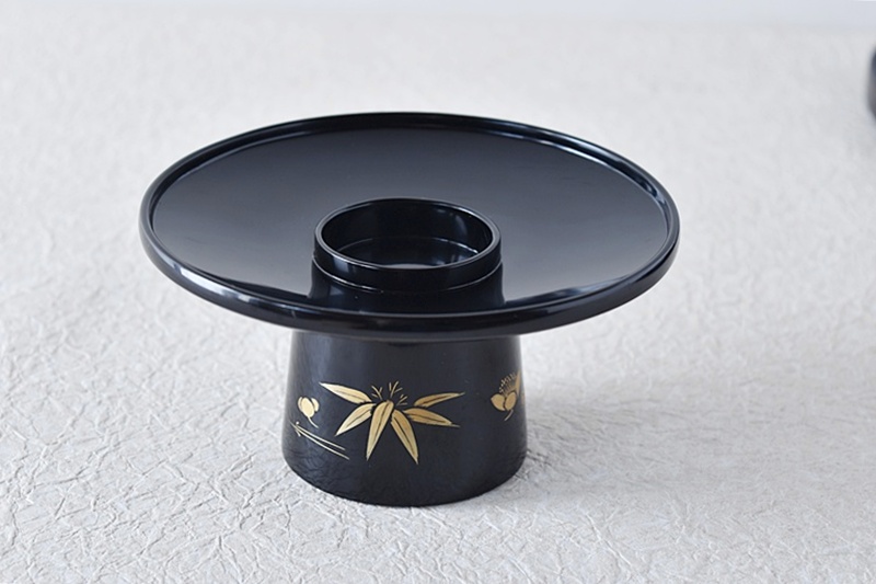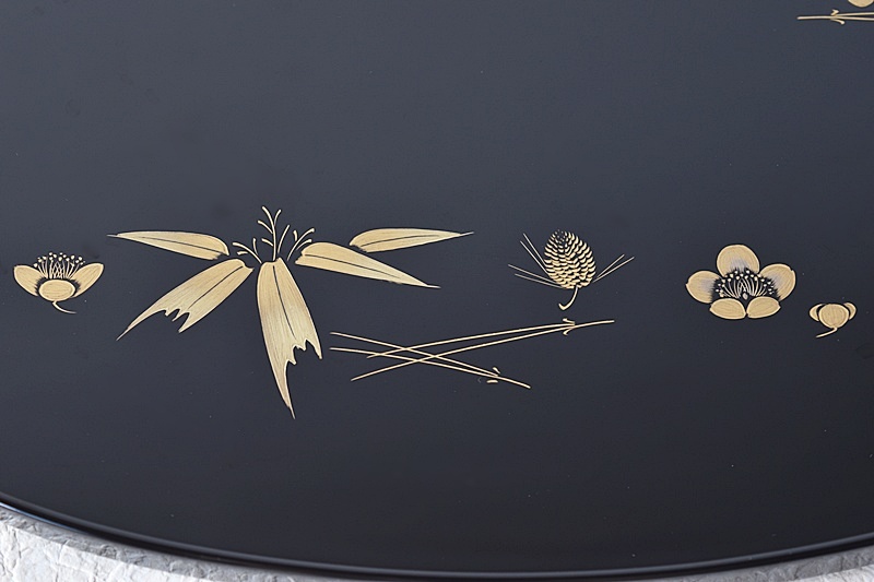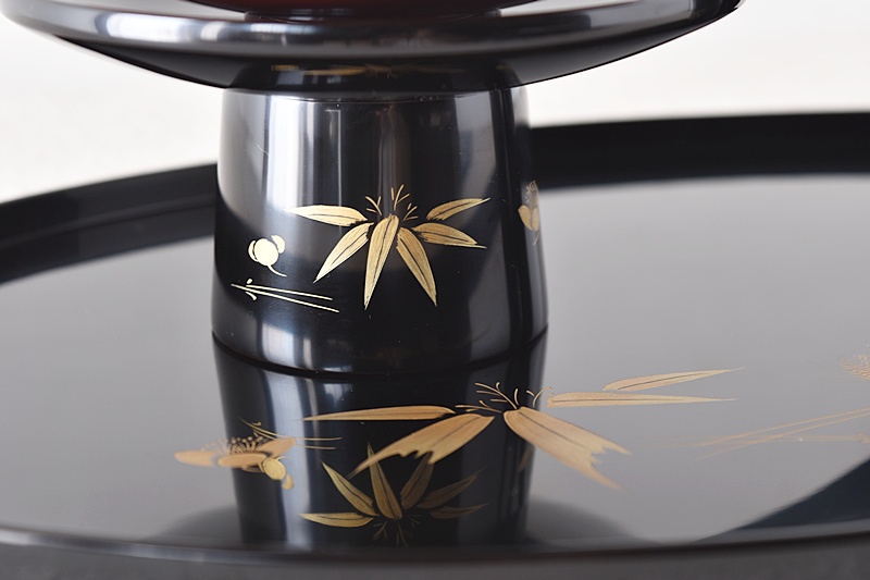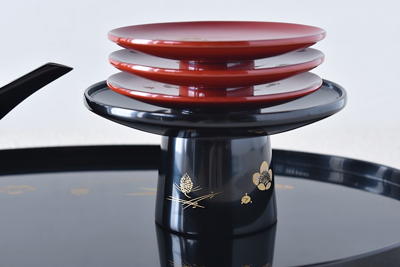松竹梅の沈金蒔絵の屠蘇器セットです。