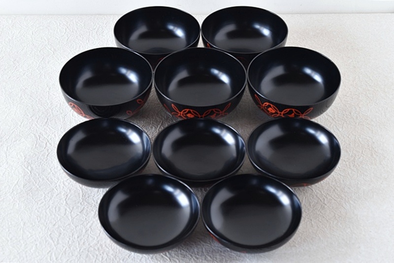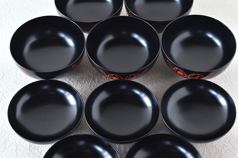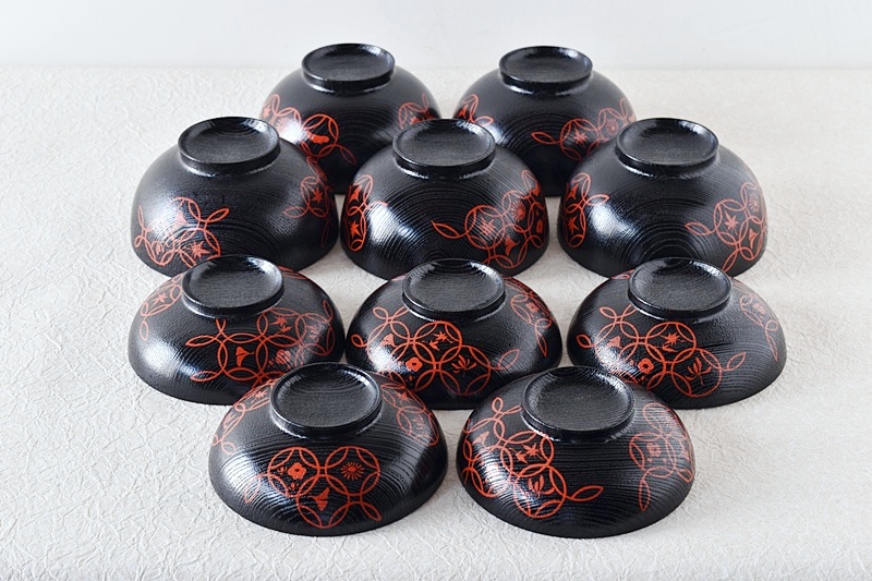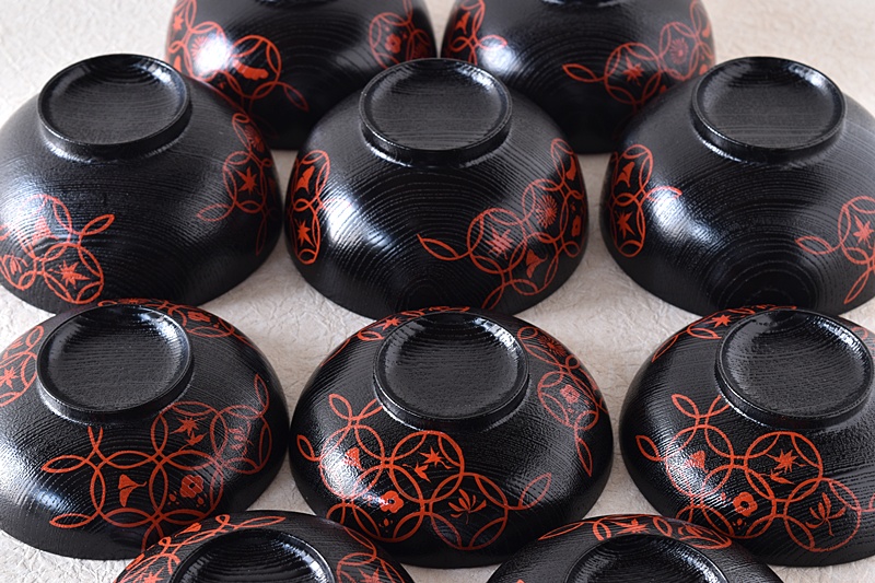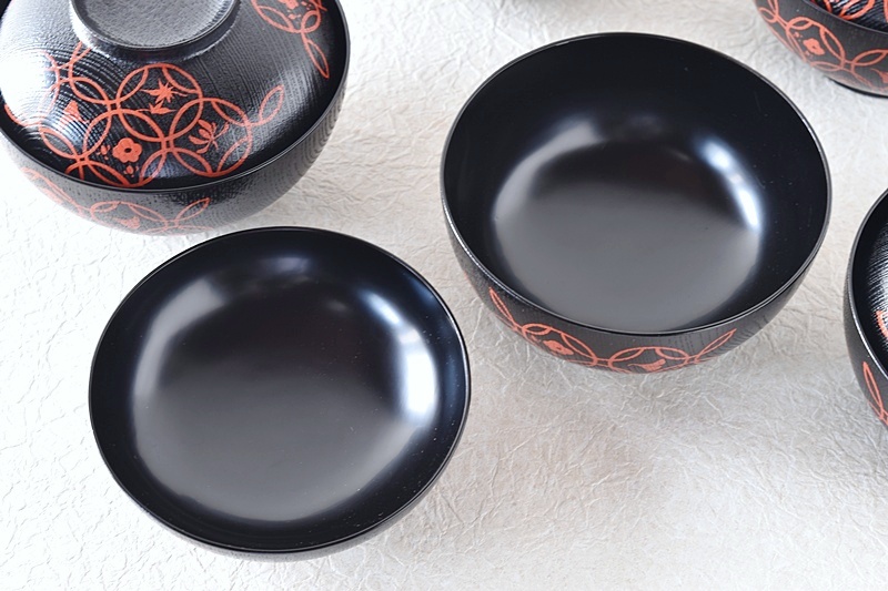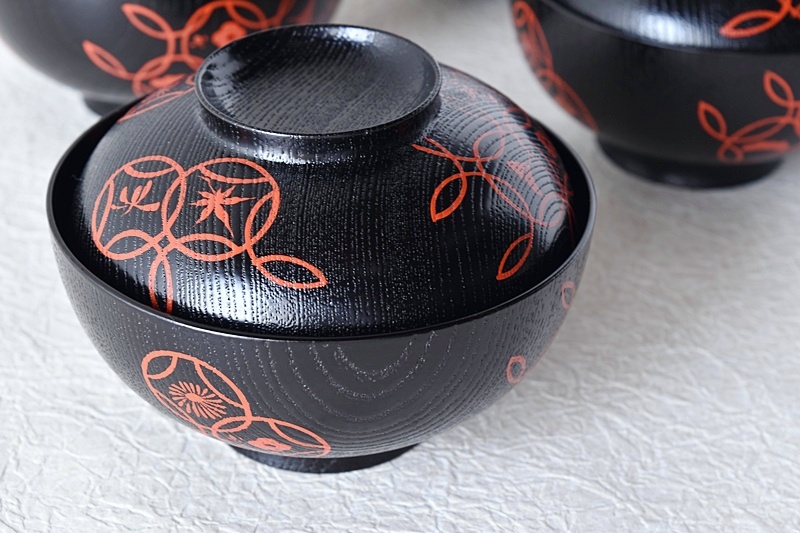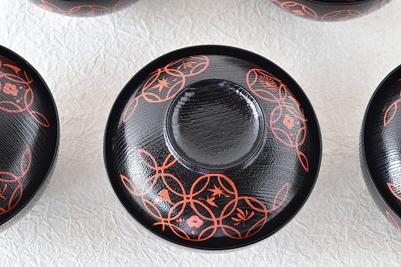 輪島塗 塗師 岡本陽斎 黒塗り赤蒔絵 七宝蒔絵 煮物椀 天然木製漆塗 5客セット