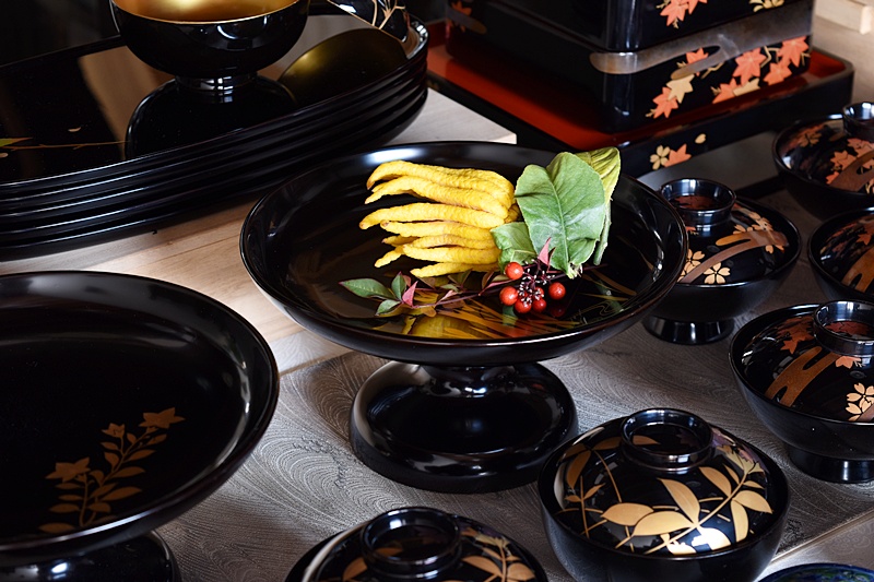 秋にはお月見のお団子をのせたり菓子器として使いますが、お祝いのお飾りにもいかがでしょうか。