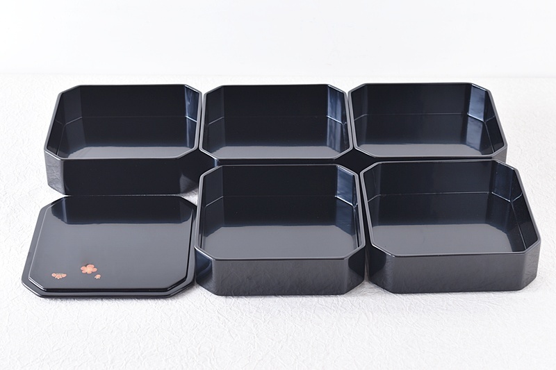 輪島塗 天然木製漆塗 黒塗り 五段縁高 蓋裏梅蒔絵付 Sold Out