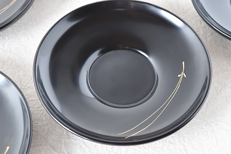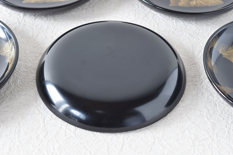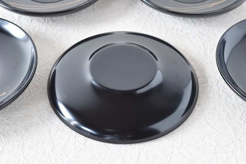 輪島塗 天然木製漆塗 黒塗松蒔絵 沈金蒔絵 茶托 菓子皿 各5客セットSold Out