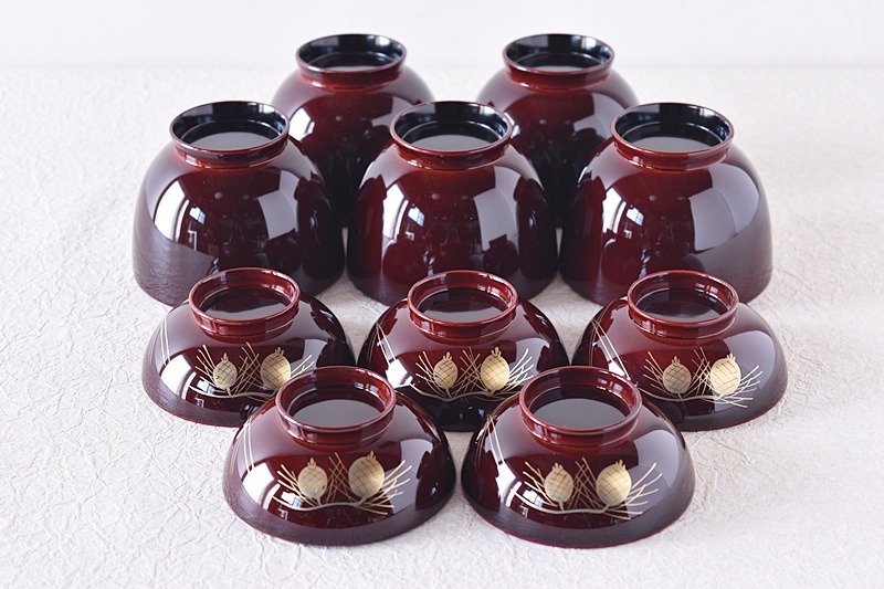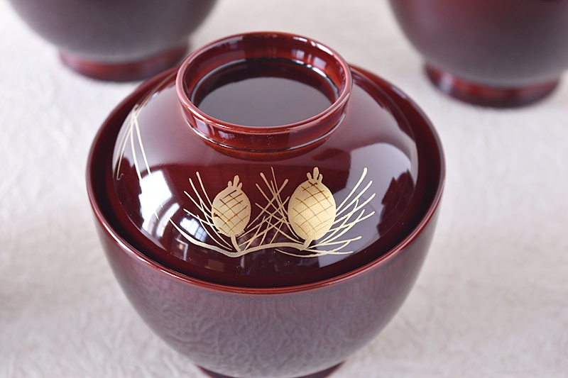 輪島塗 松笠蒔絵 小吸物椀 棗型吸物椀 角知作 5客セットSold Out