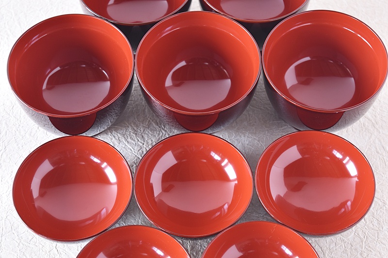 溜塗に内側は朱塗り、すっきりときれいなお椀です。